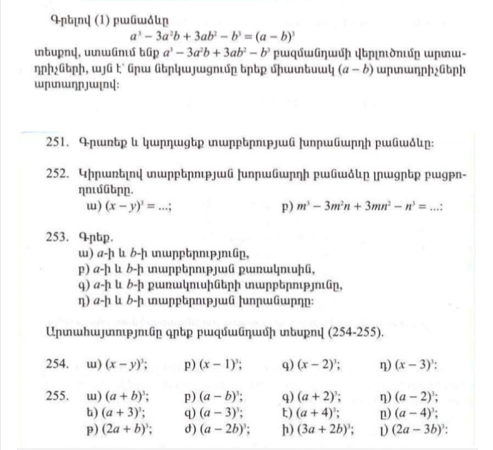 255.ա)(a+b)^3=(a-b)×(a+b)